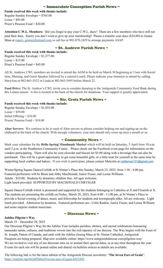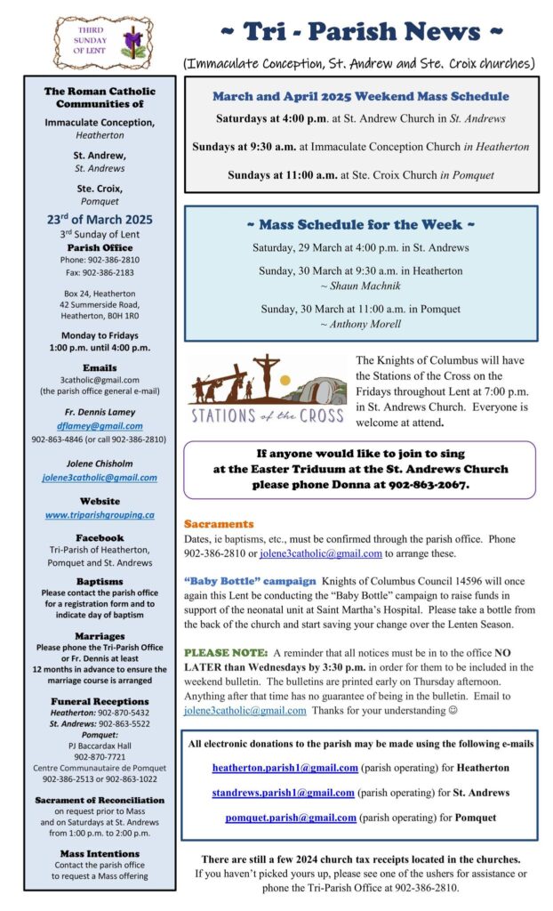 Tri Parish news for the week of March 23rd, 2025